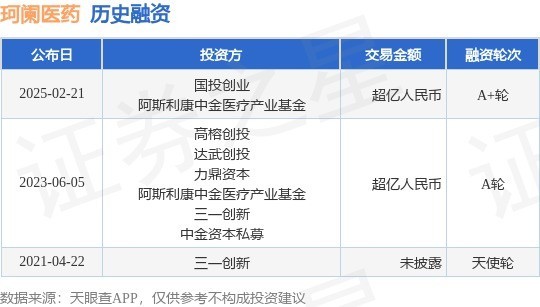 证券之星消息,根据天眼查APP于2月21日公布的信息整理,珂阑(上海)医药科技有限公司A+轮融资,融资额超亿人民币,参与投资的机构包括国投创业,阿斯利康中金医疗产业基金。